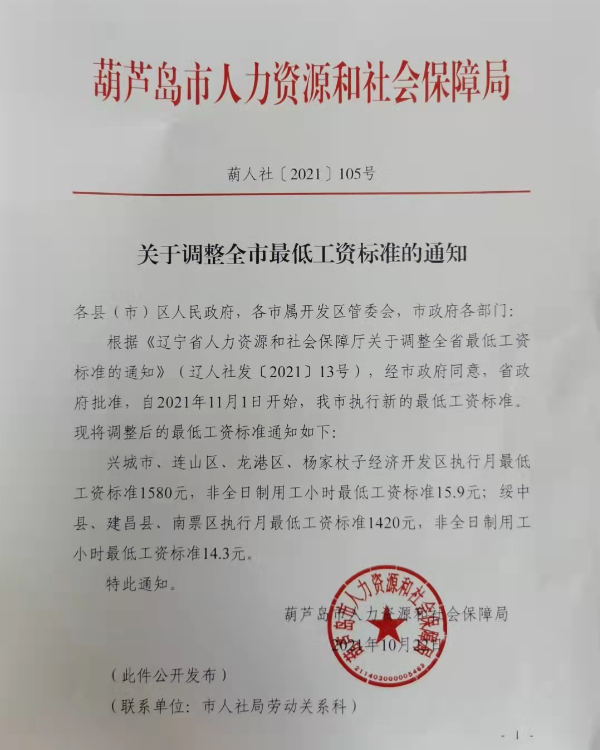 關于調(diào)整全市最低工資標準的通知