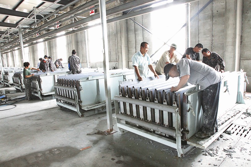遼寧綠垣建材開發(fā)有限公司是去年10月入駐興城臨海產(chǎn)業(yè)區(qū)的招商引資項目,8月8日正式投產(chǎn)。公司生產(chǎn)的輕質(zhì)節(jié)能墻板,主要是利用煤灰煤渣、農(nóng)業(yè)廢棄物,通過化學(xué)激化技術(shù)、采用機械化一次澆注成型的復(fù)合墻體材料,是住房與城鄉(xiāng)建設(shè)部的推廣項目,具有多項國家發(fā)明和實用新型專利,具有阻燃性、高強度、節(jié)能、環(huán)保等優(yōu)勢,廣泛用于建筑的各個領(lǐng)域,深受國內(nèi)建筑市場的歡迎,并成功打入國際市場。企業(yè)投產(chǎn)以來一直產(chǎn)銷兩旺,處于“零庫存”狀態(tài)。