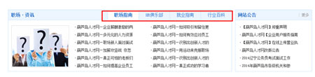 四、職場·資訊:葫蘆島人才網(wǎng)首頁底部“職場·資訊”增加子菜單,為應(yīng)聘者提供求職的基本信息和最新資訊,增加了應(yīng)聘者的職場信息。如下圖: