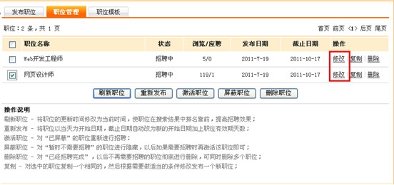 如果您的職位發(fā)布有改動,只需要點擊職位修改即可: